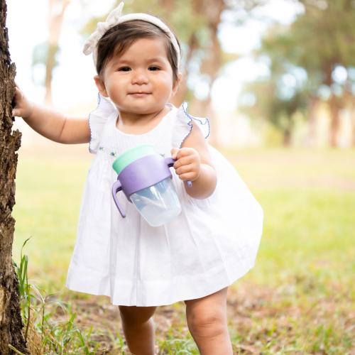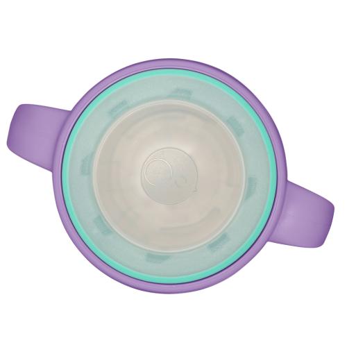 Las asas anchas y ergonómicas facilitan el agarre a las manitas pequeñas, fomentando la autonomía. Tanto la tapa como la base transparente permiten a los niños ver el contenido y a los padres controlar la cantidad de líquido restante.