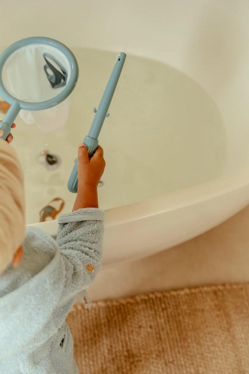 ¡Diversión garantizada en cada baño! El juego de pesca para la bañera de Little Dutch en color azul transforma el momento del baño en una aventura marina llena de imaginación. Los niños podrán pescar simpáticos animalitos del océano con la caña magnética o atraparlos con la red, desarrollando la coordinación y la motricidad fina mientras se divierten.