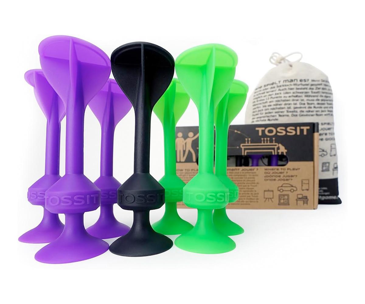 Los dardos TOSSIT actualizan el clásico juego de lanzamiento con un diseño seguro, innovador y perfecto para todas las edades. Fabricados en silicona duradera y flexible, eliminan por completo las puntas metálicas. Su base redondeada y equilibrada permite un lanzamiento preciso y estable, sin riesgo de golpes ni daños en muebles o superficies.