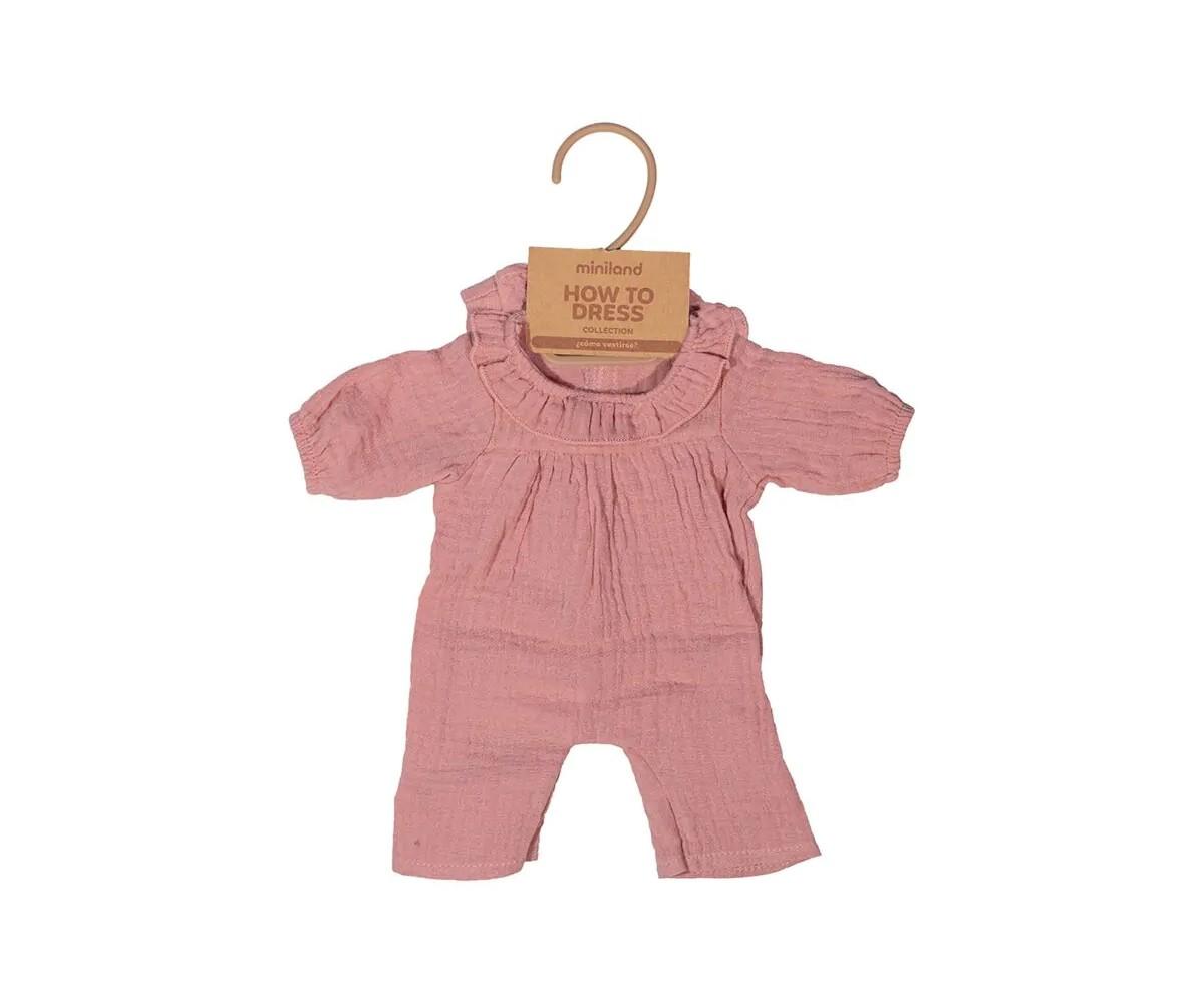 Prepara a los muñecos Miniland de 38 cm para la hora de dormir con este dulce pijama rosa y su gorro a juego. ¡Un conjunto ideal para que los peques disfruten!