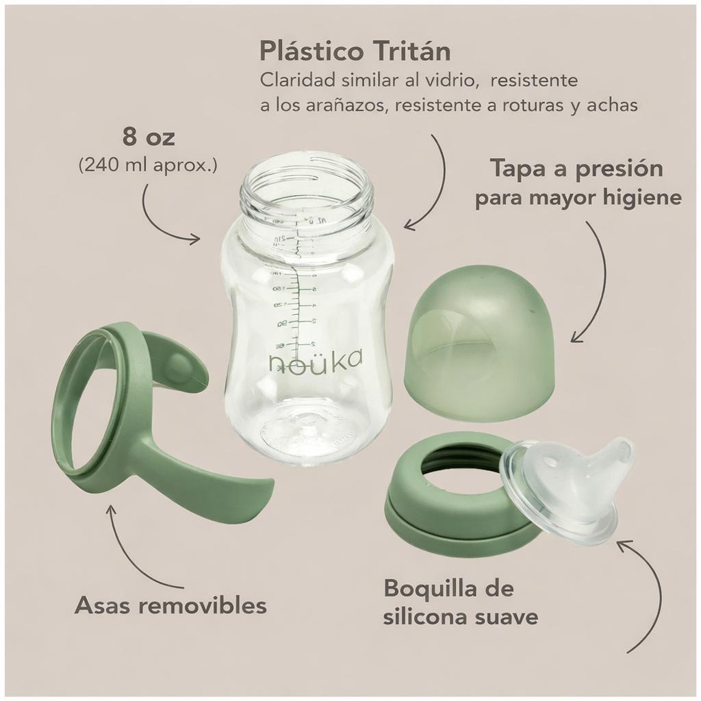 Gracias a sus asas removibles, el pequeño puede desarrollar el agarre y mejorar sus habilidades motoras mientras gana independencia. La tapa protectora mantiene la boquilla limpia e higiénica durante el transporte o cuando la llevas en la pañalera.