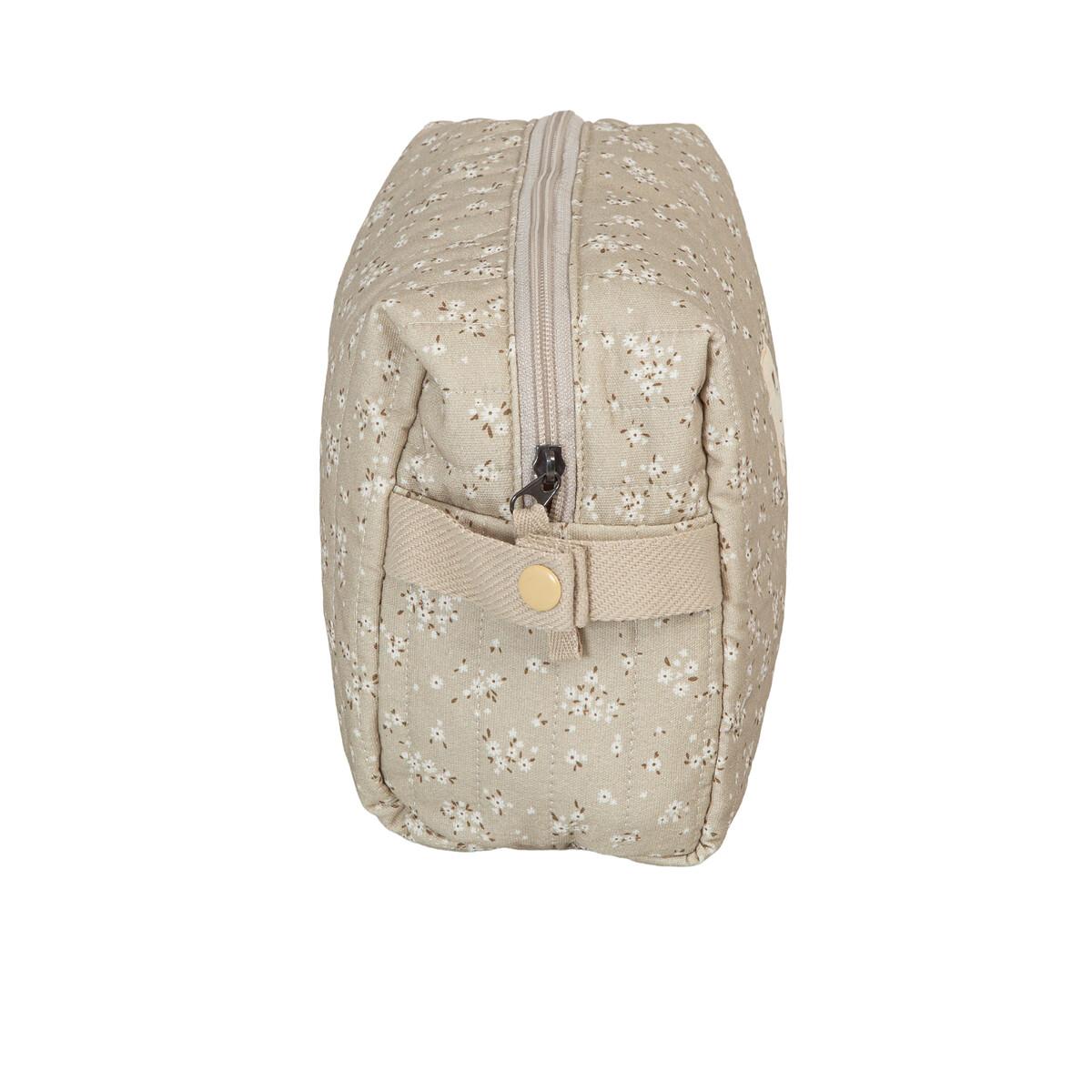 Confeccionado en algodón y con un delicado estampado floral en tonos suaves, este neceser combina estilo y funcionalidad. Su estructura acolchada aporta resistencia y protege el contenido, mientras que su amplio compartimento con cierre de cremallera facilita el acceso y la organización.