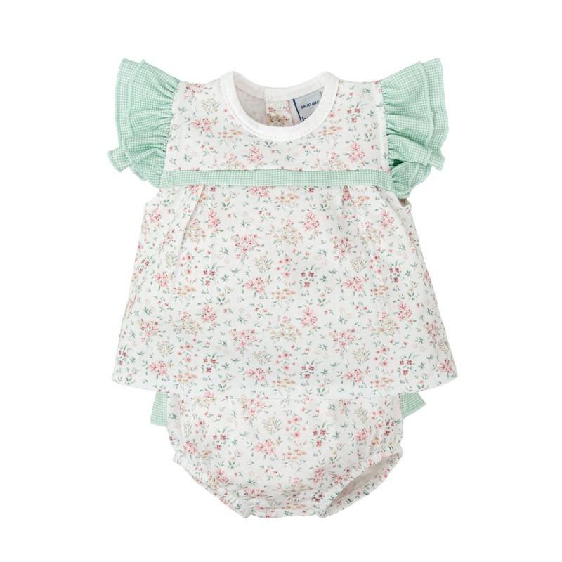 Conjunto bebé Babidu estampado floral con volante y braguita