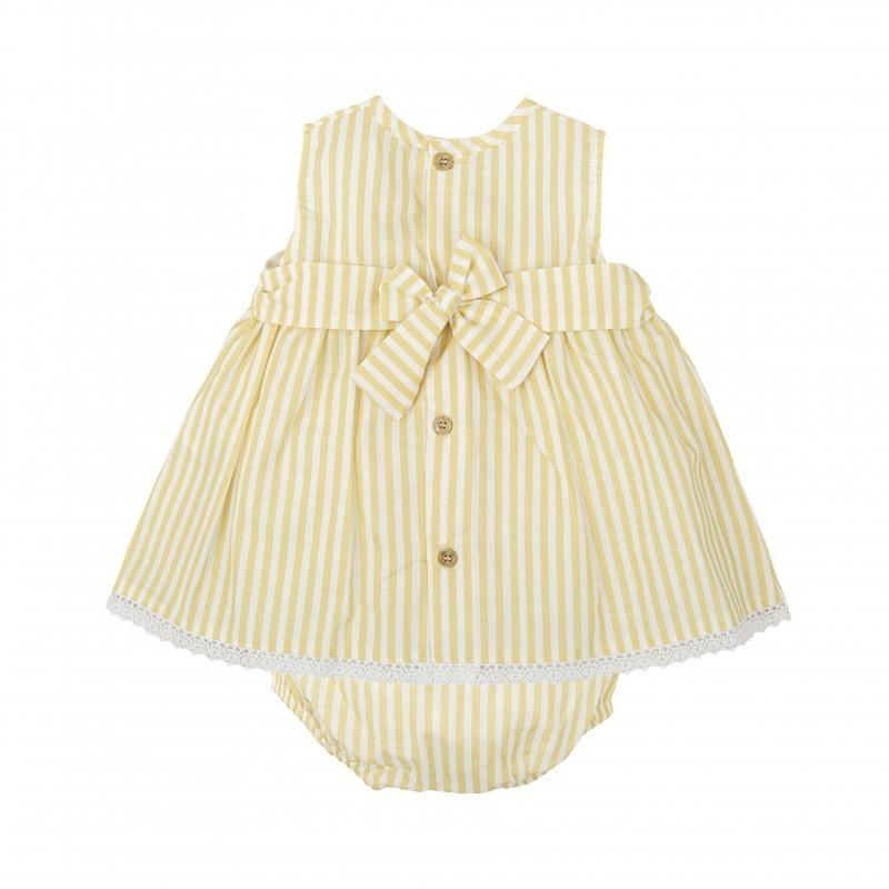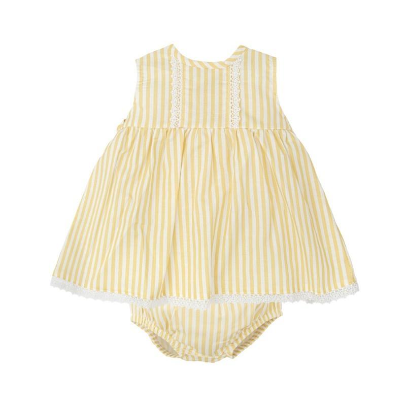 Conjunto bebé niña Babidu vestido de rayas con puntilla y cubrepañal